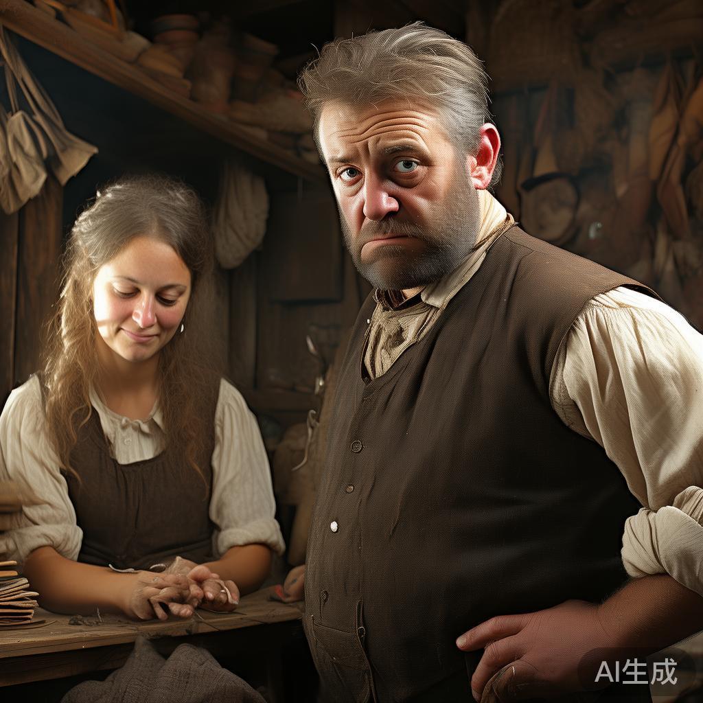后来,事情闹得有点大,村里的官府终于出面了。他们把这个性格古怪的裁缝叫去,把他丢进监狱,希望这次能让他长点教训。在里面日子并不好过,光靠几片面包和水度日。关了一段时间后,总算是放了他,但条件是得发誓永远不再打他老婆,要和她好好相处,就像真正的夫妻那样,一同面对生活的各种琐碎。