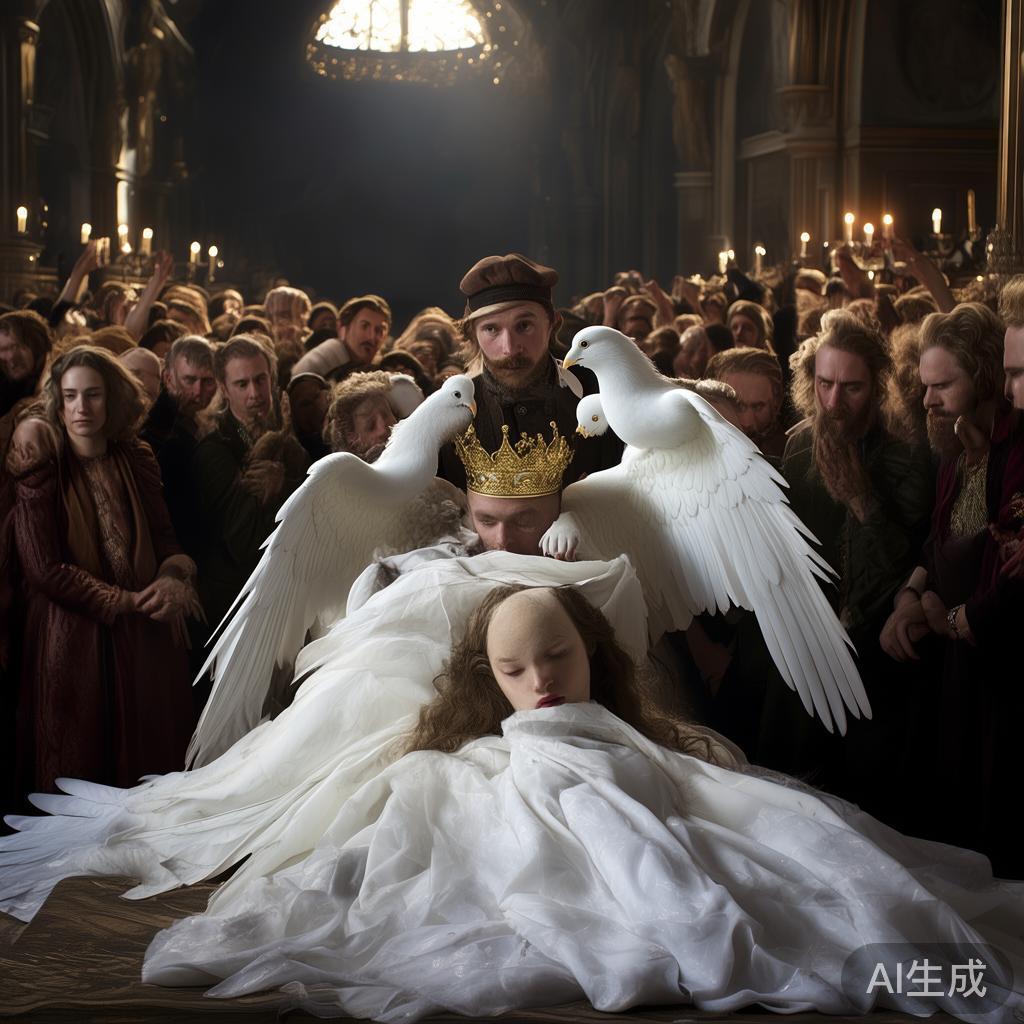 最终,看着昔日的厨师在众人瞩目下接受惩罚,我想,虽然故事结局似乎已然完美,但其中诸多复杂的人性和情感却无法轻易平息。就连那位慈爱的王后,终究是在历经磨砺之后才离世,而她的两只天使依旧陪伴着她,化作白鸽停留在墓地之上,照顾着她最后的归宿。