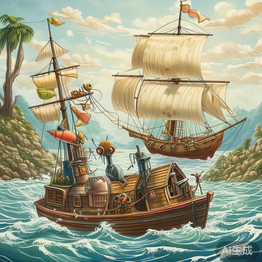 就这样,教授和跳蚤搭乘汽船和帆船一路启程,期间,跳蚤表演的各种绝技吸引了许多人,他们竟然没有花一分钱便顺利抵达了野人国。