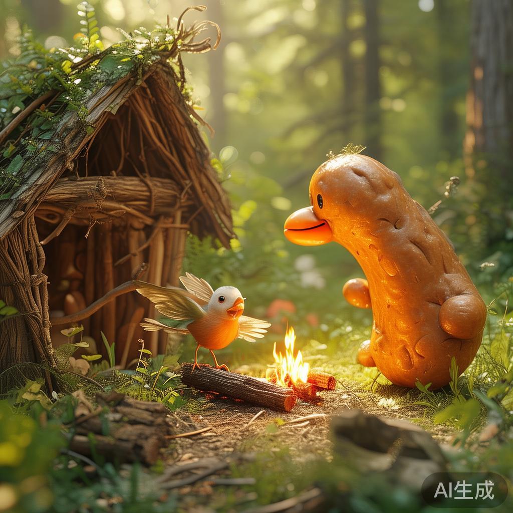 从前,有一只小鸟和一根香肠,它们住在一起,过得相当不错。生活里的每一天都充满了快乐与温馨。小鸟每天飞到森林里提供柴火,而香肠则负责做饭。这种互帮互助的分工让他们的家庭越来越富裕。